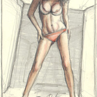 6,89 x 4,25 inches, lead and colored pencil/watercolor,